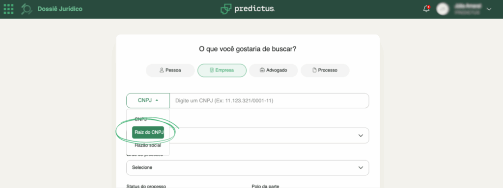 Importante: A Predictus não realiza o monitoramento da tramitação do processo, mas sim o monitoramento de novas ações distribuídas para o CNPJ informado.