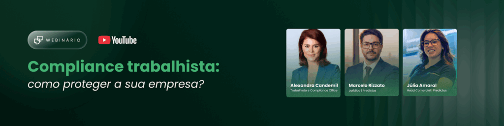 Se você quer aprofundar ainda mais esse tema, recomendamos o webinário “Compliance Trabalhista: como proteger a sua empresa?”, disponível no canal da Predictus no YouTube.